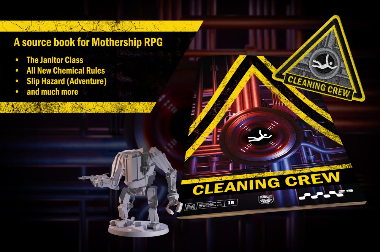 Chris Foley: We’ve really tried to hit a few different angles with Cleaning Crew to create a sourcebook for all things janitorial! Starting out our focus was very much on equipment—scrubbers, cleaning canisters, disinfecting lasers and the like—but we quickly spread out from there. New chemical rules like wounds and examples, roll tables for various encounters for janitors working around the Dream, a new class for those wanting to get to mopping & scrubbing and eventually a small adventure within: Slip Hazard.